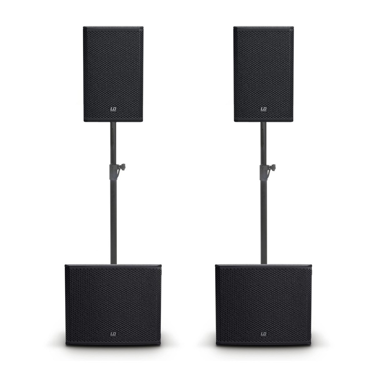 De professionele geluidsinstallatie is voldoende voor een publiek tot 200 personen. Afhankelijk van de ruimte binnen of buiten. Met draadloze microfoon en 15 inch subwoofers.